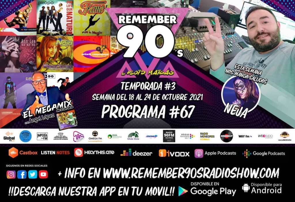 Otra semanita más volvemos con la mejor música Dance Remember de los 90s y 2000, ya disponible el programa #67 de Remember 90s Radio Show con @floidmaicas en el cual, podrás disfrutar durante 60 minutos de la mejor música Eurodance, Italodance, Trance, House, Euro House, Makina, Techno… que marcaron una época, donde sonarán los éxitos musicales de artistas de la talla de: