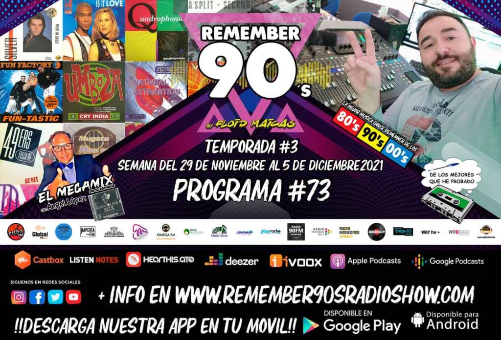 Otra semanita más volvemos con la mejor música Dance Remember de los 90s y 2000, ya disponible el programa #73 de Remember 90s Radio Show con @floidmaicas en el cual, podrás disfrutar durante 60 minutos de la mejor música Eurodance, Italodance, Trance, House, Euro House, Makina, Techno… que marcaron una época, donde sonarán los éxitos musicales de artistas de la talla de: