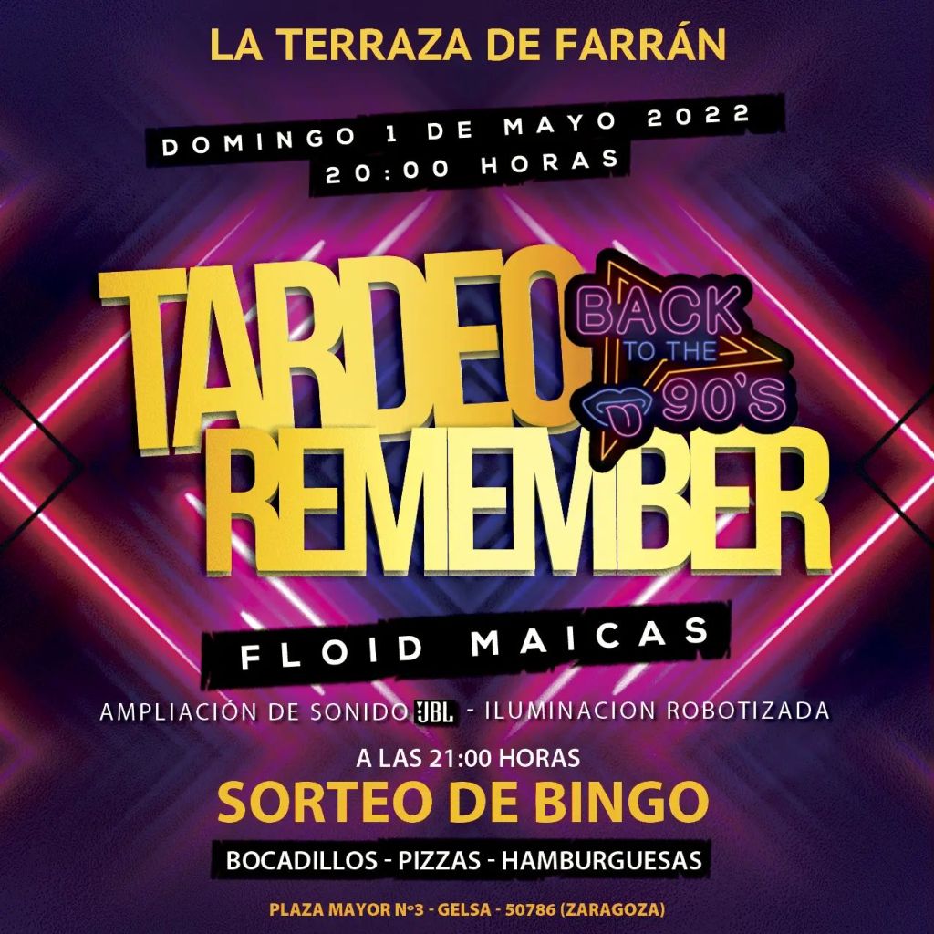 Nuestro locutor y dj del programa, @floidmaicas estará actuando éste próximo domingo 1 de Mayo a partir de las 20:00 horas en la localidad zaragozana de Gelsa con la mejor música de los 90s.