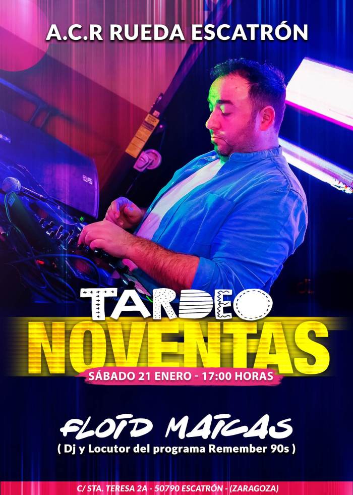 Este próximo sábado 21 de enero nuestro locutor y dj del programa, @floidmaicas estará pinchando en la localidad zaragozana de Escatrón, será en el local de A.C.R. con la fiesta «Tardeo Noventas» a partir de las 1️⃣7️⃣:0️⃣0️⃣ horas 🚀