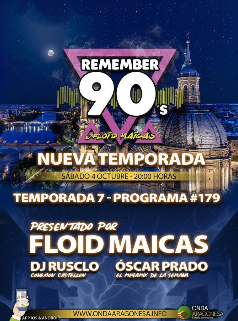 Este próximo sábado 4️⃣ de octubre a las 2️⃣0️⃣:0️⃣0️⃣ horas damos comienza a la nueva temporada de Remember 9️⃣0️⃣s Radio Show con Floid Maicas en Onda Aragonesa.