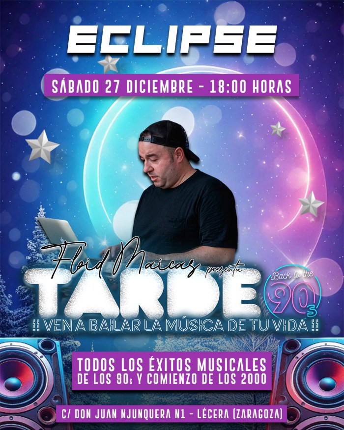 Este próximo sábado 2️⃣7️⃣ de diciembre toca liarla en la localidad zaragozana de Lécera, fiesta !!Tardeo Back To The 9️⃣0️⃣s!! en Eclipse.